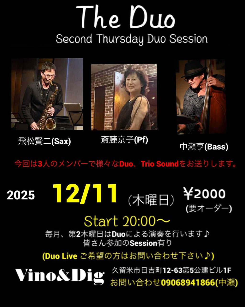 | 出演者 | 飛松賢二(sax) 斎藤京子(pf.) 中瀬亨(b.) |
