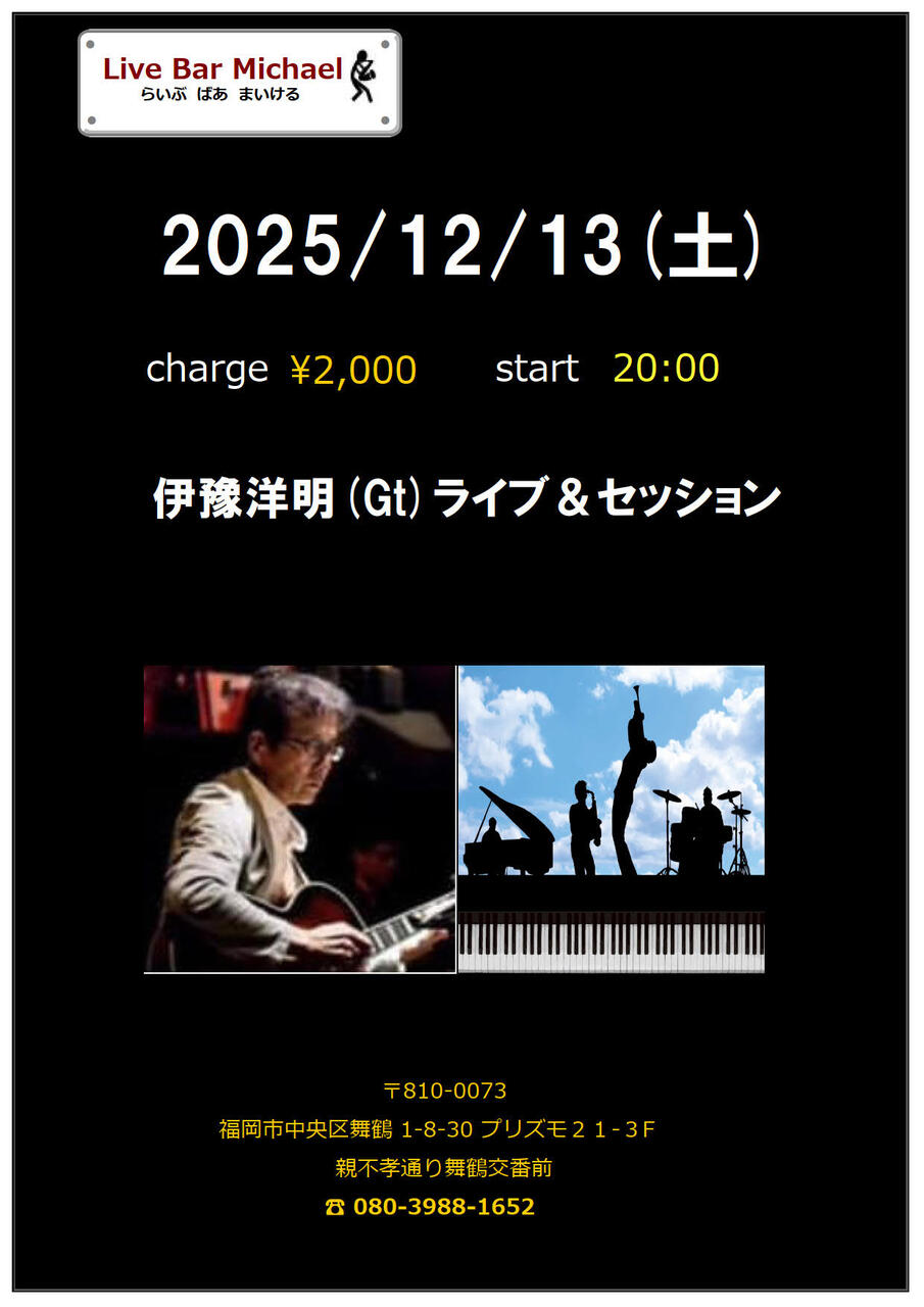 - 出 演 : 伊豫洋明(Gt)ライブ&セッション2000円20:00スタート