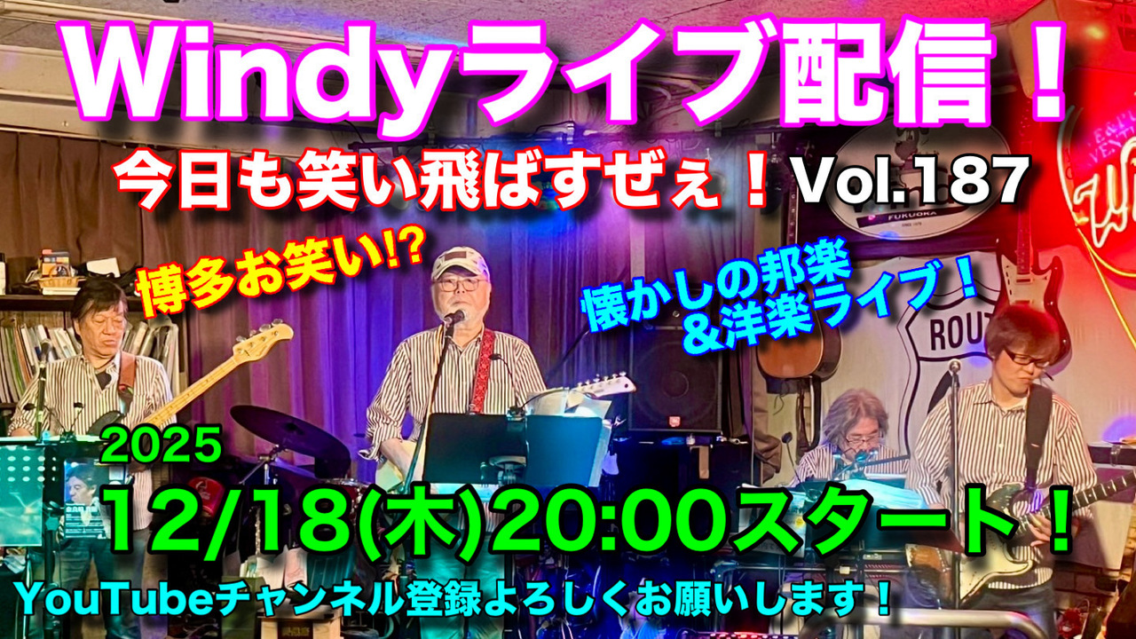 Windyライブ配信Vol.187!今日も笑い飛ばすぜぇ!