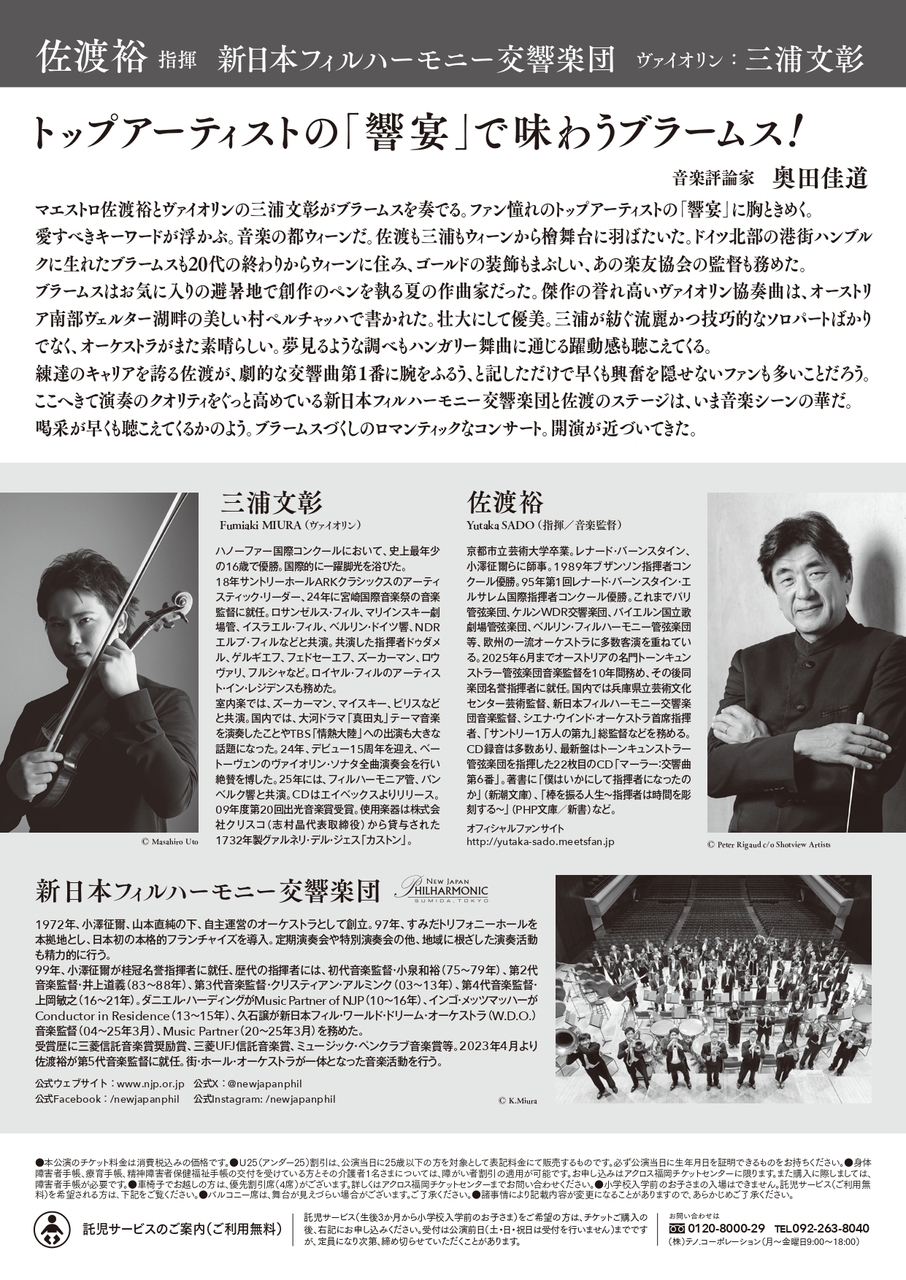 佐渡裕指揮 新日本フィルハーモニー交響楽団 ヴァイオリン:三浦文彰