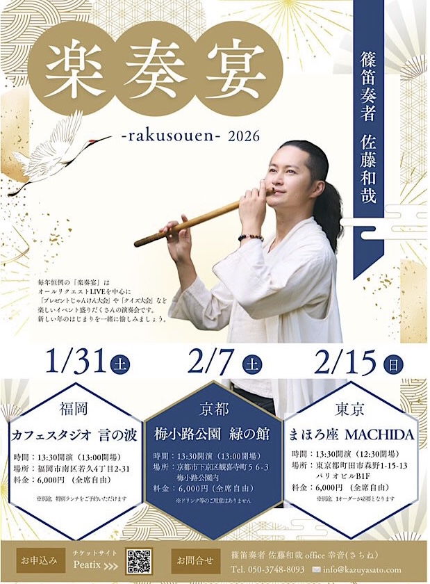 | 出演者 | 篠笛奏者 ・佐藤和哉 |