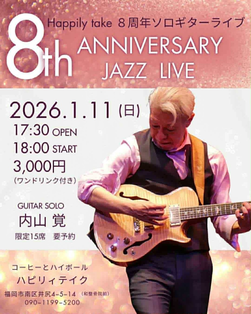| イベント名 | Happily take 8周年 ソロギターライブ |