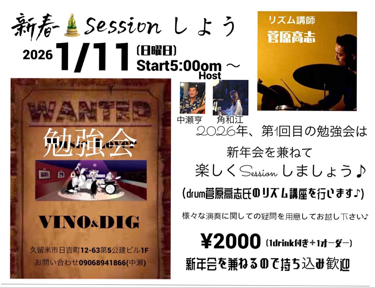 - 出 演 : 中瀬亨(b.), 角和江(pf.), 菅原高志(リズム講師&dr.)