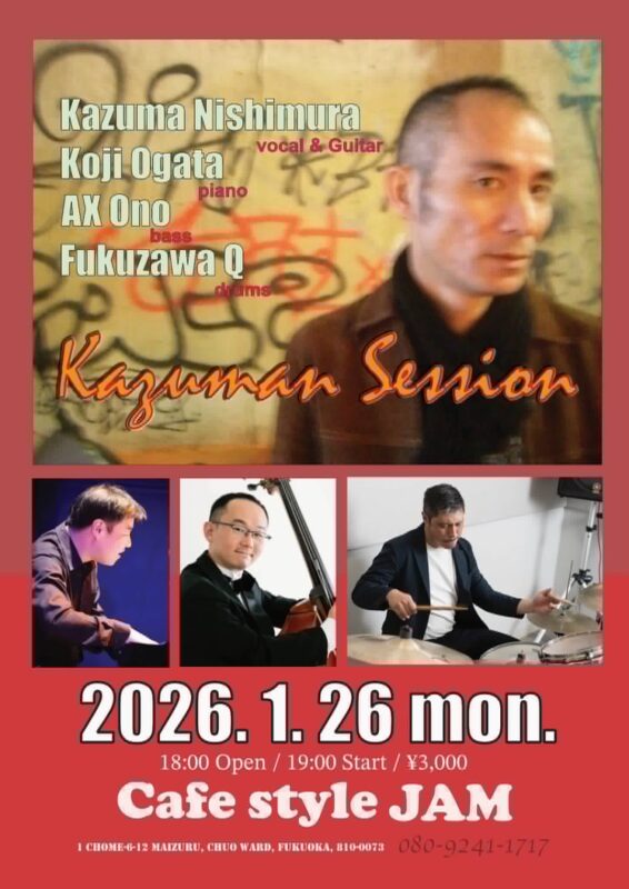 | 出演者 | 西村和真(Vo) 緒方公治(P) アックス小野(B) Fukuzawa Q(Dr) |