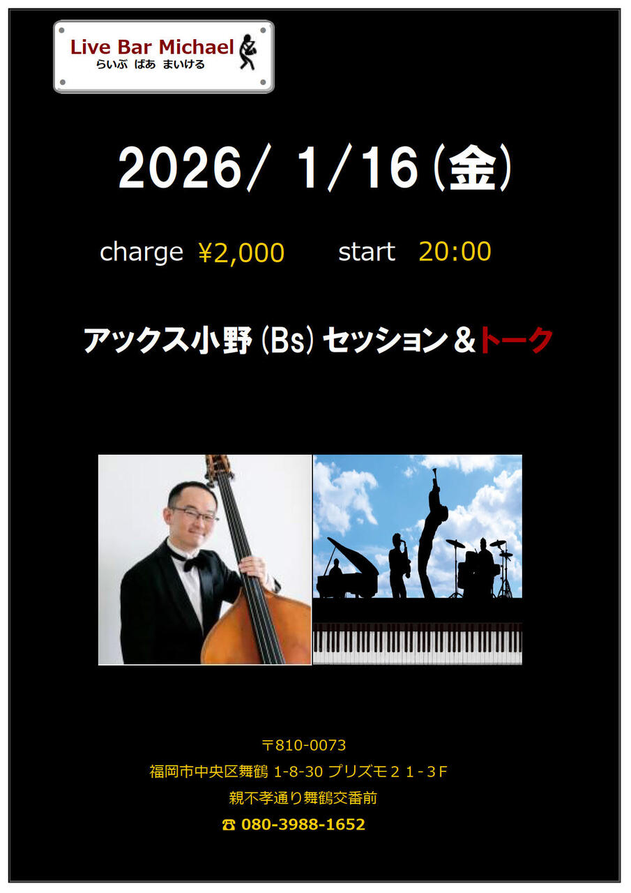 | 出演者 | アックス小野(Bs)セッション&トーク2000円20:00スタート |