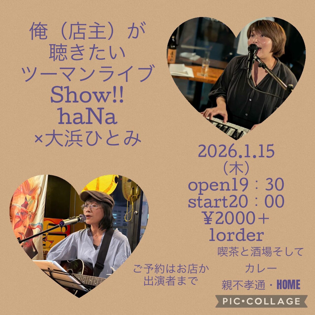 | イベント名 | haNa ×大浜ひとみ~俺(店主)が聴きたいツーマンライブSHOW!! |