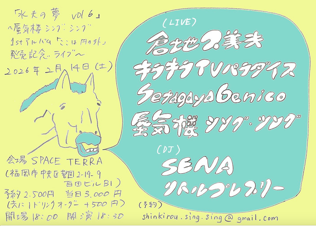 | 出演者 | 倉地久美夫/キラキラTVパラダイス/SetagayaGenico/蜃気楼シング・シング・シング/DJ:SENA リトルプレスリー |