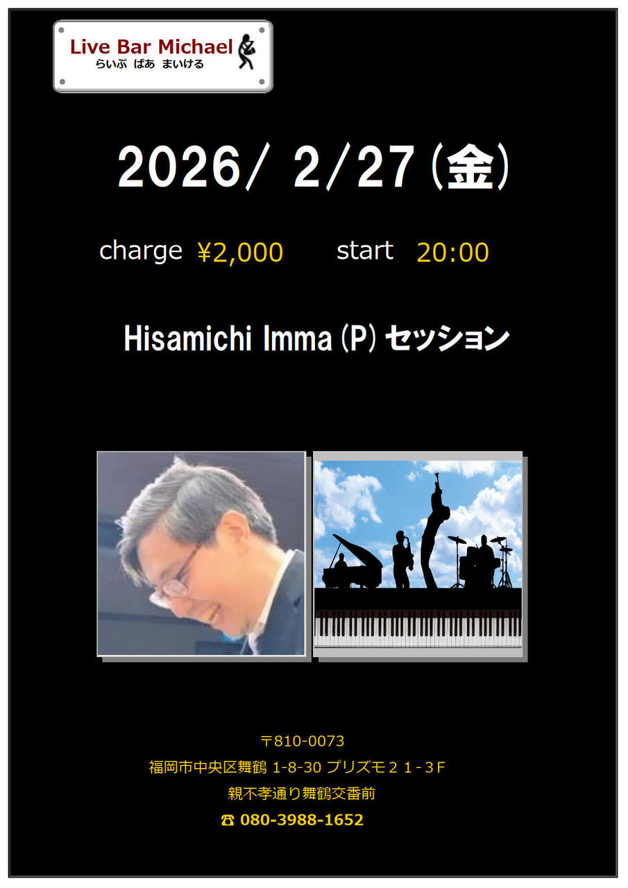 - 出 演 : Hisamichi Imma(P)宮原朝哉(Bs)セッション2000円20:00スタート