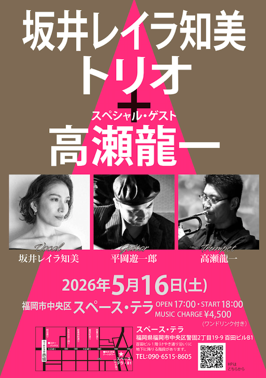| 出演者 | Vocal:坂井レイラ知美 Guitar:平岡遊一郎 Special Guest Trumpet:高瀬龍一 |