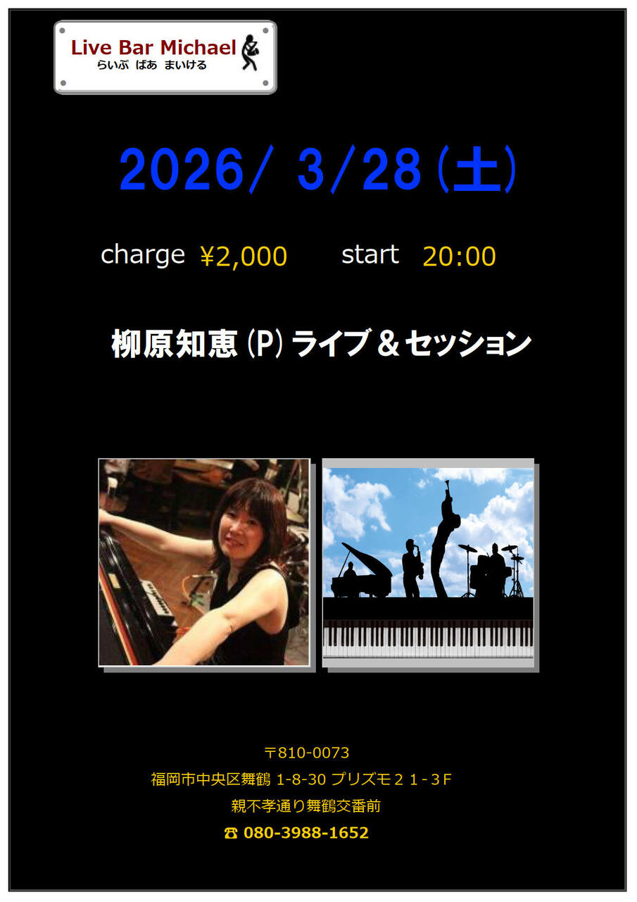 | 出演者 | 柳原知恵(P)ライブ&セッション2000円20:00スタート |