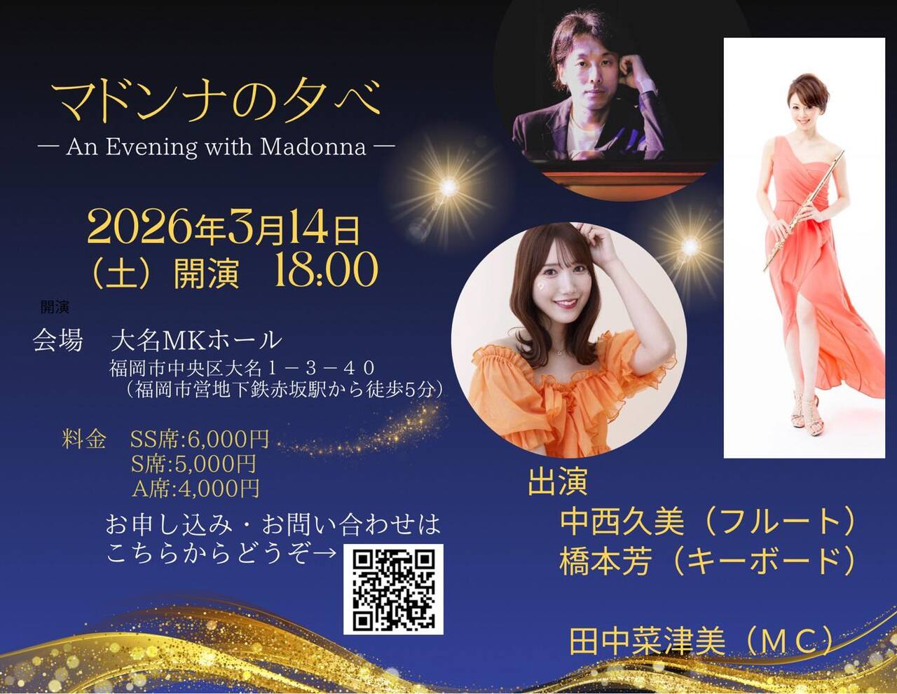 | 出演者 | 中西久美(fl.) 橋本芳(key.) |