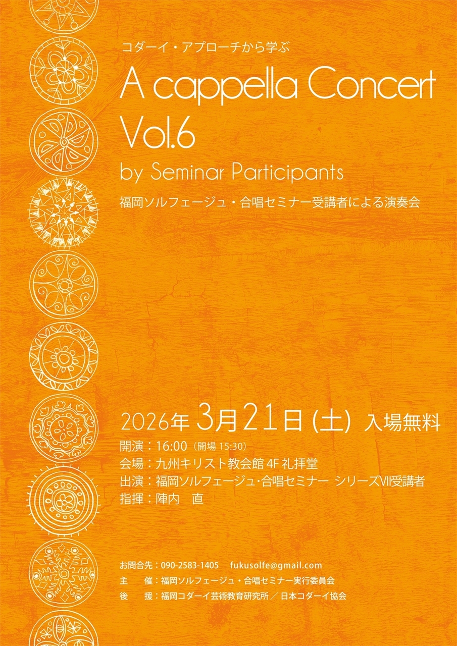 | 出演者 | 福岡ソルフェージュ・合唱セミナーを受講した参加者によるまとめの演奏会 |