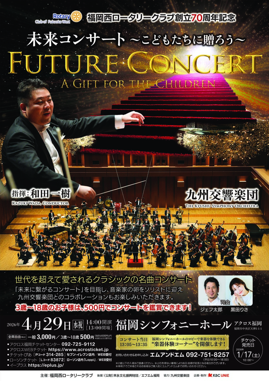 | イベント名 | 福岡西ロータリークラブ創設70周年記念未来クラシック ~子供たちに贈ろう~ |