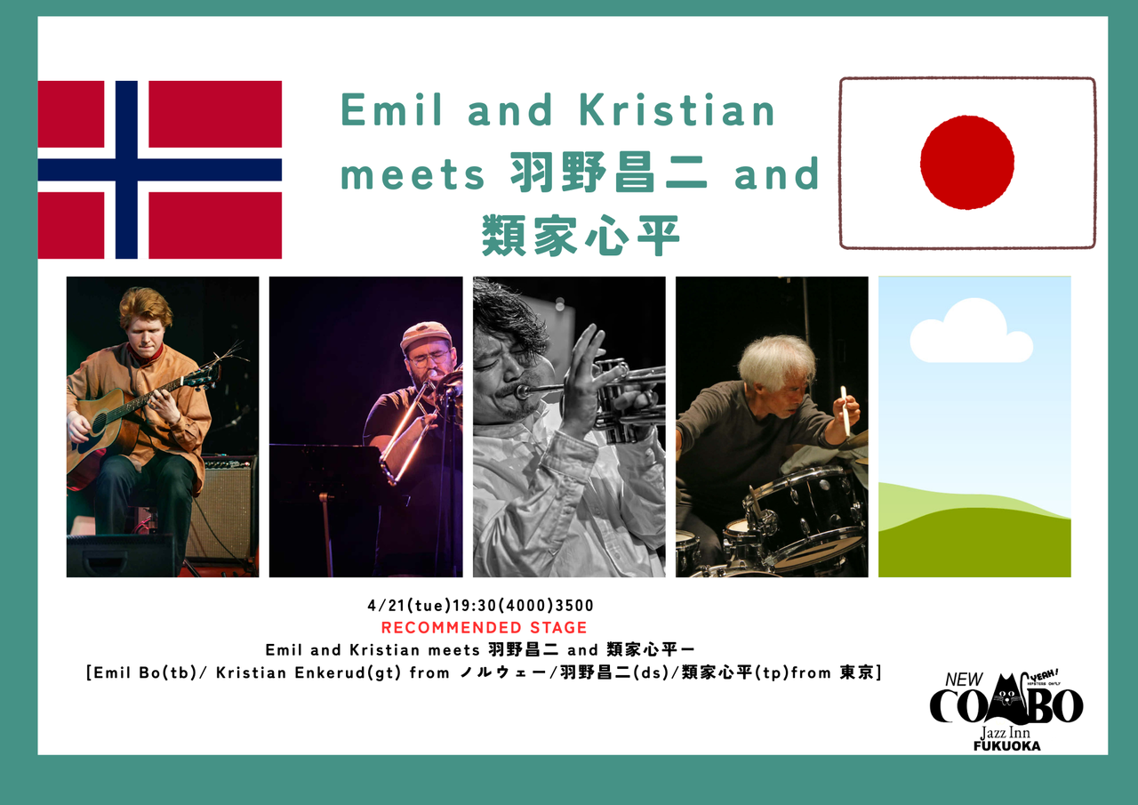 | イベント名 | Emil and Kristian meets 羽野昌二 and 類家心平 |