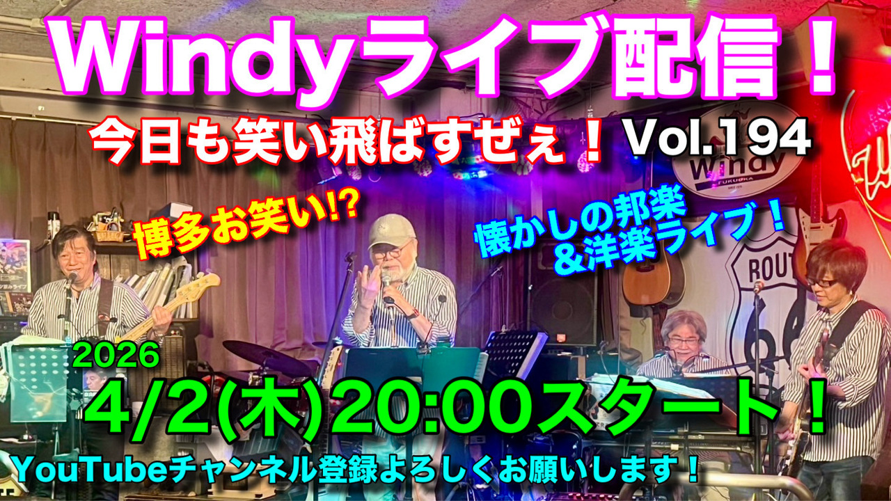 Windyライブ配信Vol.194!今日も笑い飛ばすぜぇ!