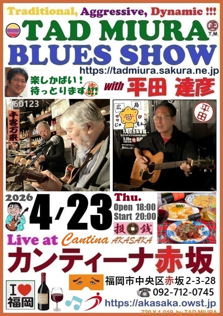 | イベント名 | TAD MIURA BLUES SHOW with 平田 達彦 |