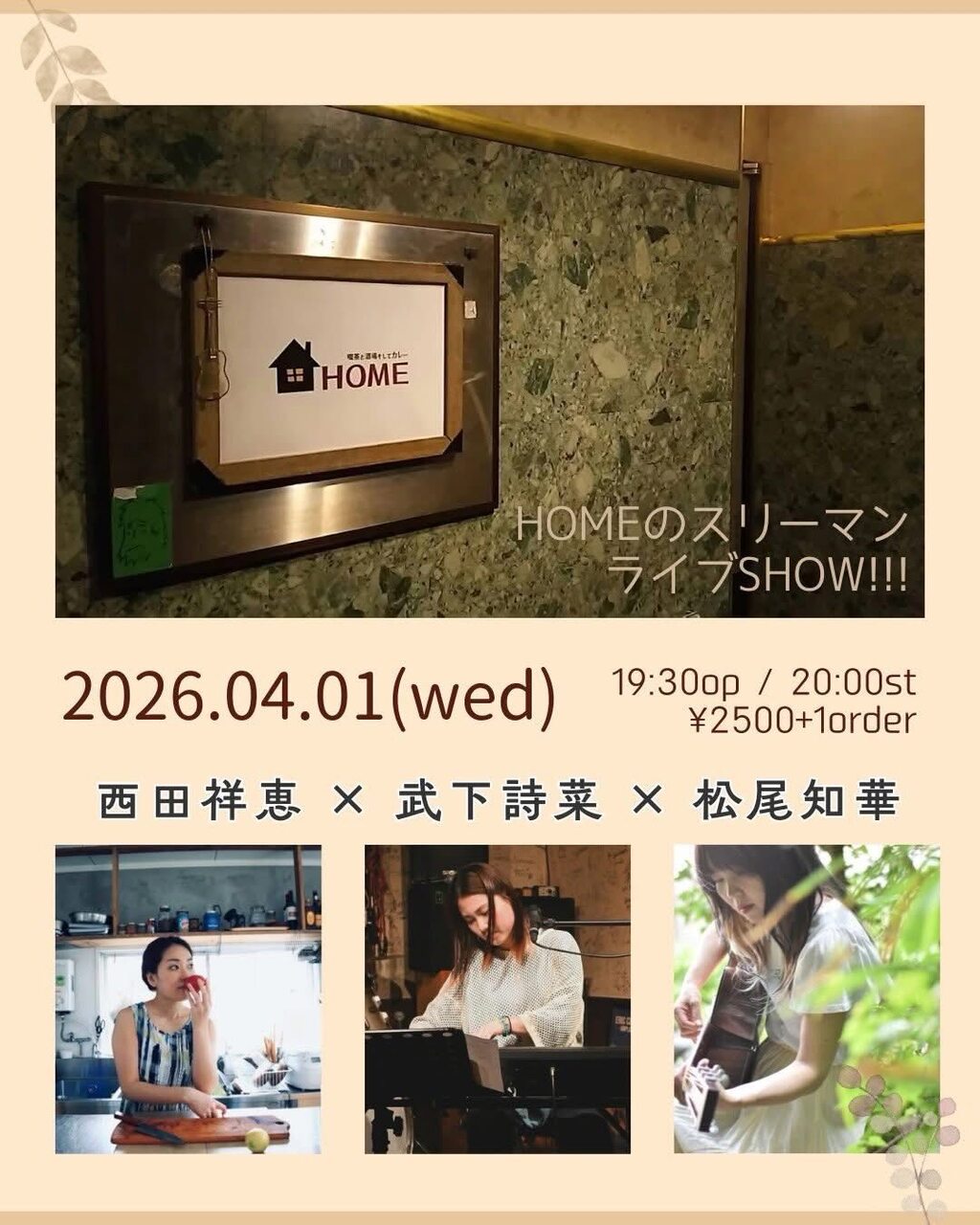 | イベント名 | 西田祥恵×武下詩菜×松尾知華~HOMEのスリーマンライブSHOW!!! |