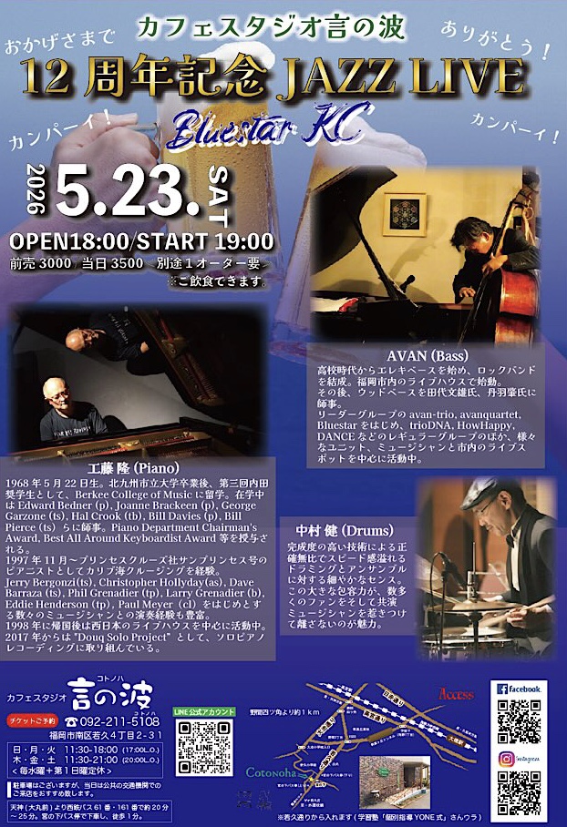 | イベント名 | カフェスタジオ言の波 12周年記念JAZZ LIVE |