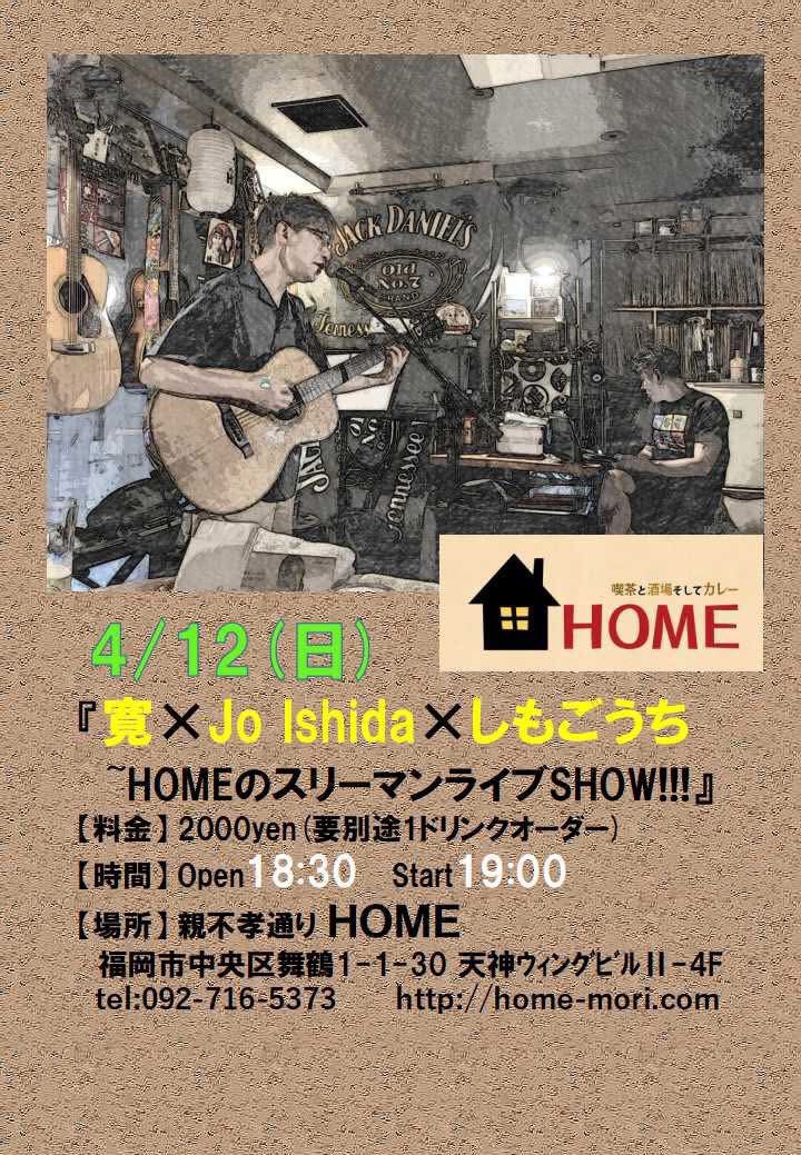 | イベント名 | 寛× Jo Ishida ×しもごうち~HOMEのスリーマンライブSHOW!!! |