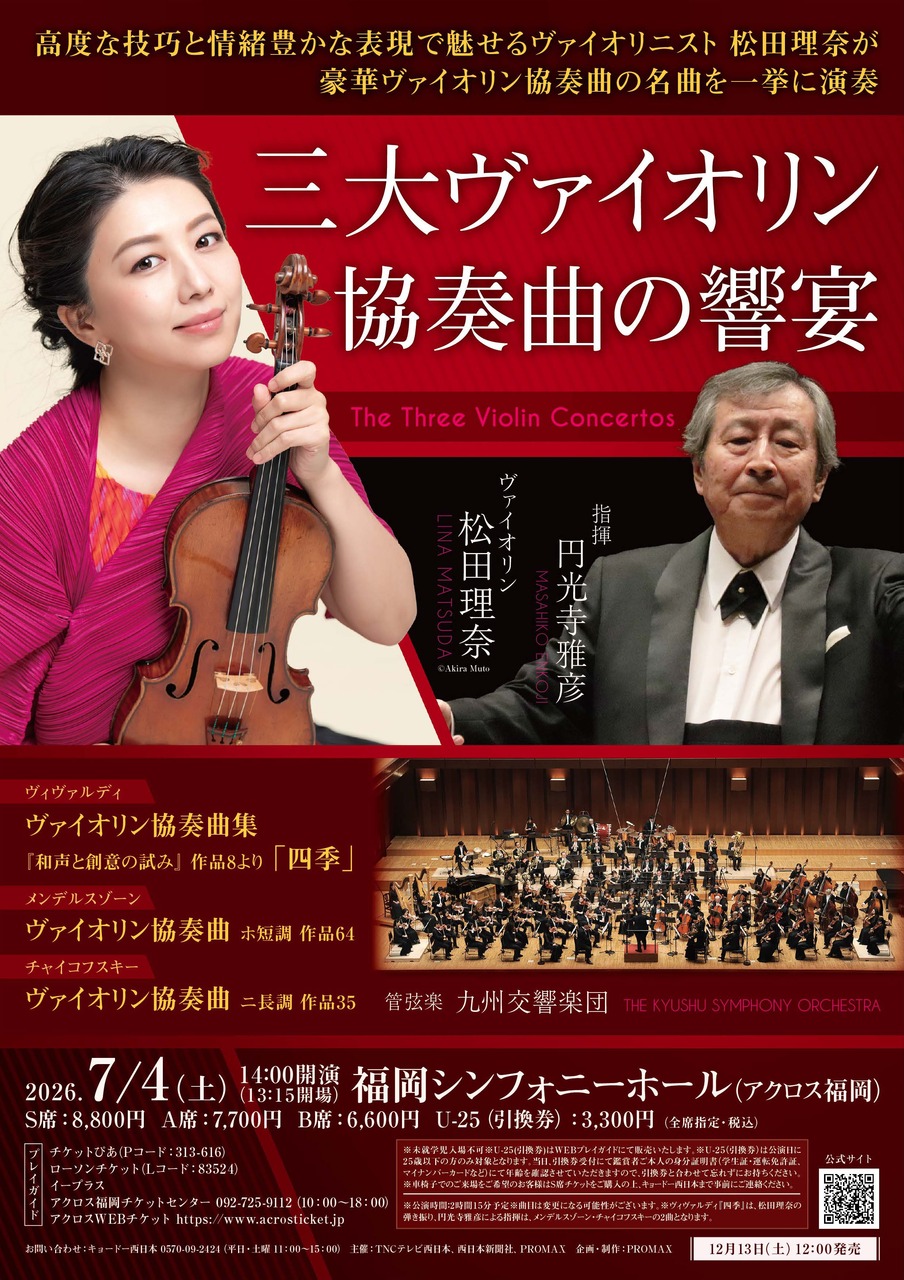 | 出演者 | 指揮 :円光寺雅彦 、ヴァイオリン :松田理奈、九州交響楽団 |