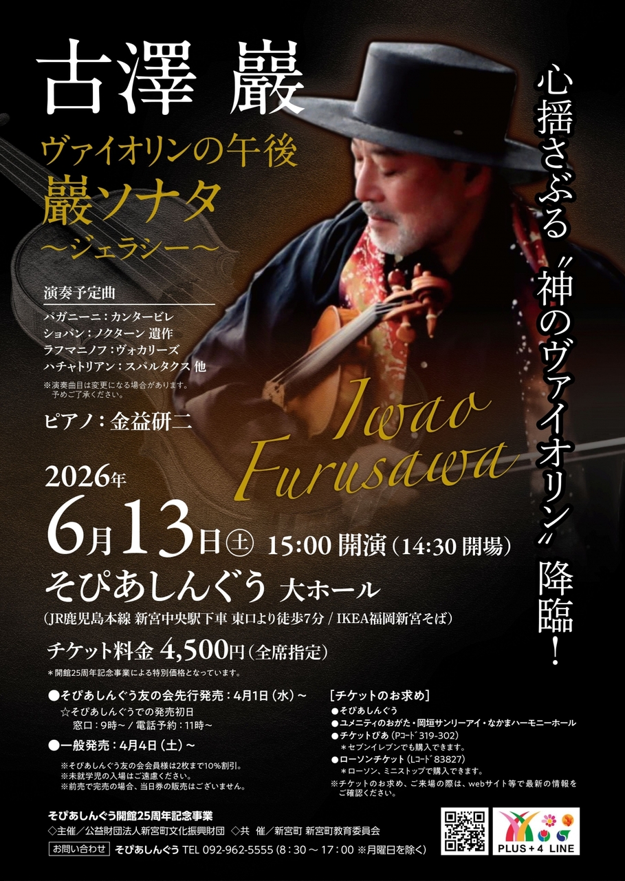 | イベント名 | 古澤巖ヴァイオリンの午後 巖ソナタ~ジェラシー~ |