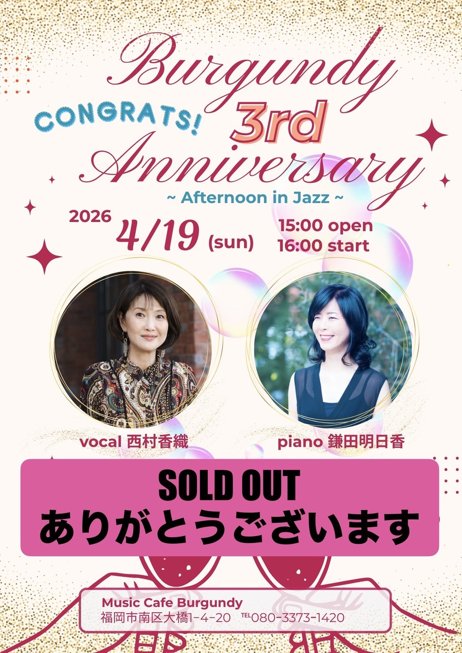 - 会 場 : Music cafe Burgundy バーガンディ(福岡県福岡市南区大橋)