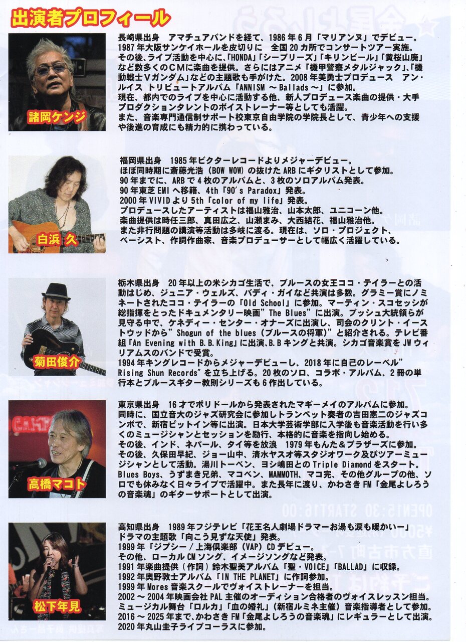 | 出演者 | 諸岡ケンジ 菊田俊介 白浜久 高橋マコト 松下年見 参加ミュージシャン 中野しげき |