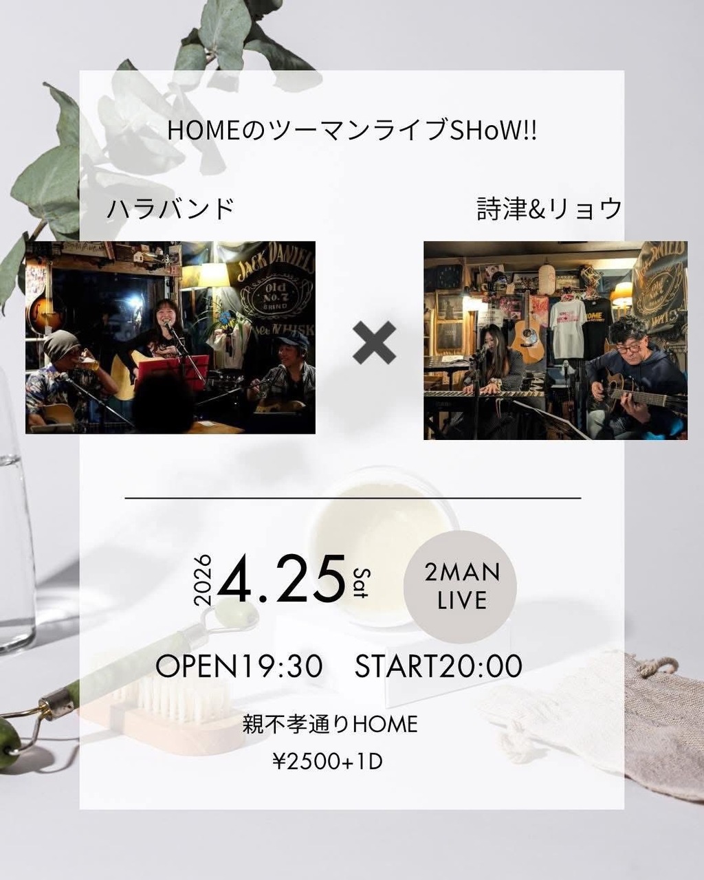 | イベント名 | ハラバンド×詩津withリョウ~HOMEのツーマンライブSHOW!! |