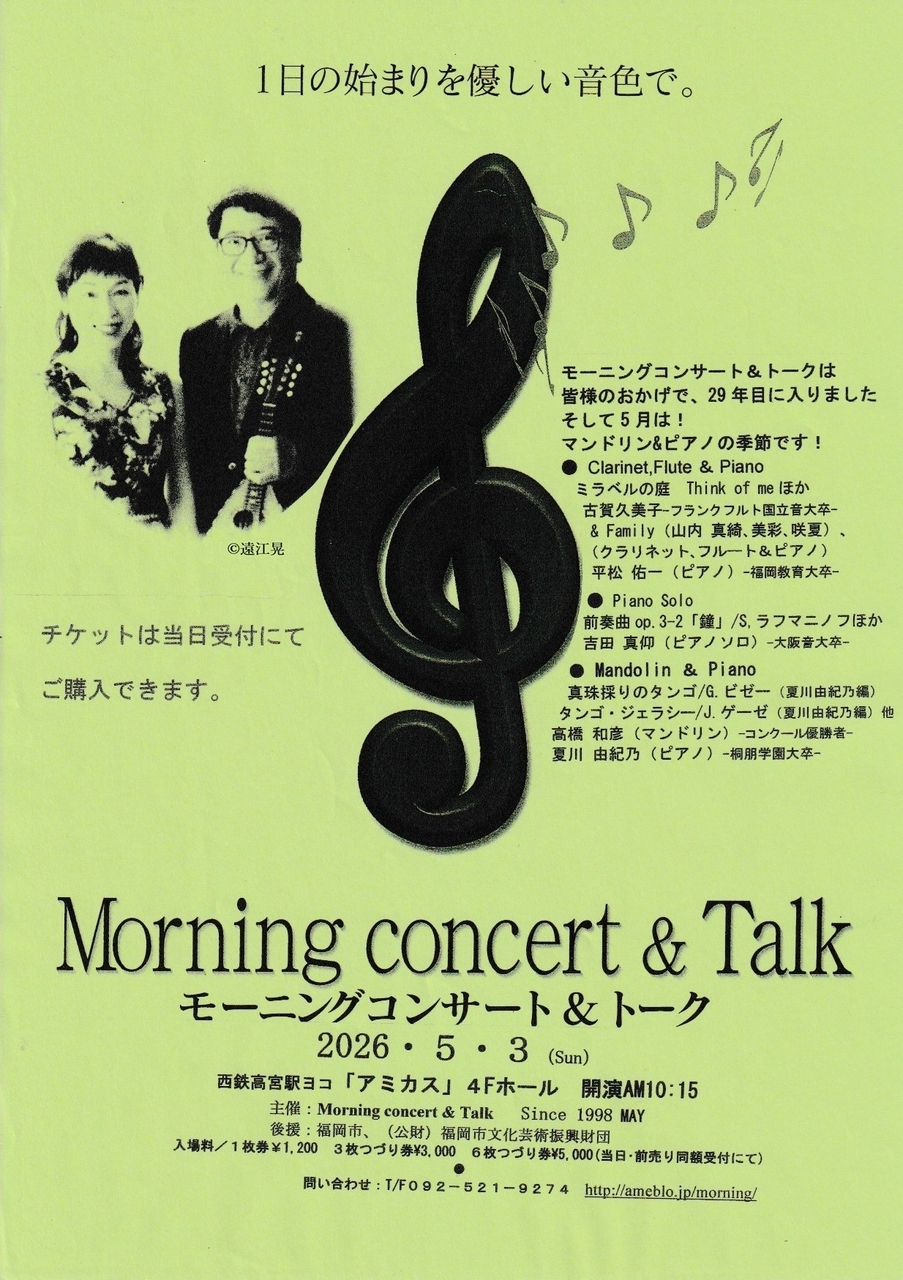 | 出演者 | 古賀久美子& Family (クラリネット、フルート&ピアノ) 、平松 佑一(ピアノ)、吉田 真仰(ピアノソロ)、高橋 和彦(マンドリン)、夏川 由紀乃(ピアノ) |