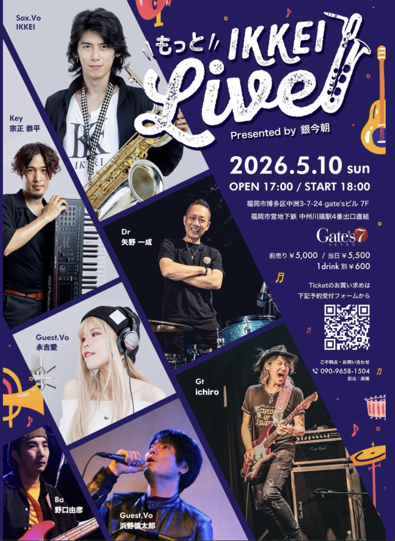 | 出演者 | Sax.Vo:IKKEI / Gt:ichiro /Dr:矢野一成 /Key:宗正恭平 /Ba:野口由彦 / GuestVo:永吉愛、浜野慎太郎 |