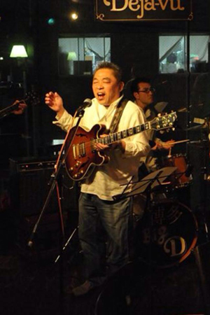 そしてすぐにB.B.キング、T・ボーン・ウォ―カ―に憧れエレキギターへ転向。最初に弾いたのはギターの音に惹かれたオ―ティス・ラッシュの“So Many Roads”。未だにこのギターの音は研究中。そしてB.B.キングのアルバム“ジャングル”に行きつく。バンドでやるのにやりやすいと言う理由でシカゴ・ブルースを中心にやっていく事に決めた。