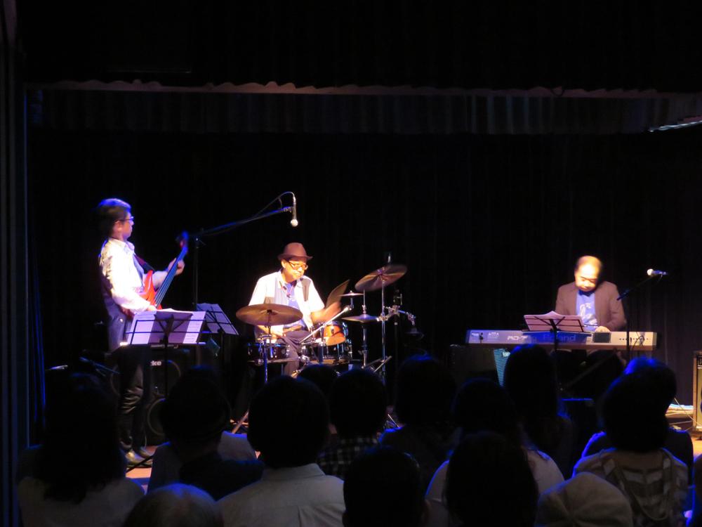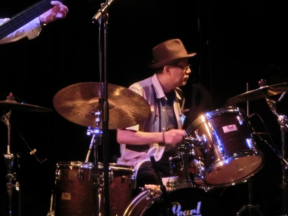 現在は内科、麻酔科の開業医だが、18歳のときに渡辺貞夫氏からプロ入り加入を受けた天才ドラマー原田迅明。彼がリーダーで率いるジンメイプロジェクトは45年来の旧知の仲間たち。プロのピアニスト、岩崎大輔と、歯科医の升井一郎(ベース)と約20年前にピアノトリオを結成。現在も中州ジャズをはじめ、様々なシーンで活躍中。