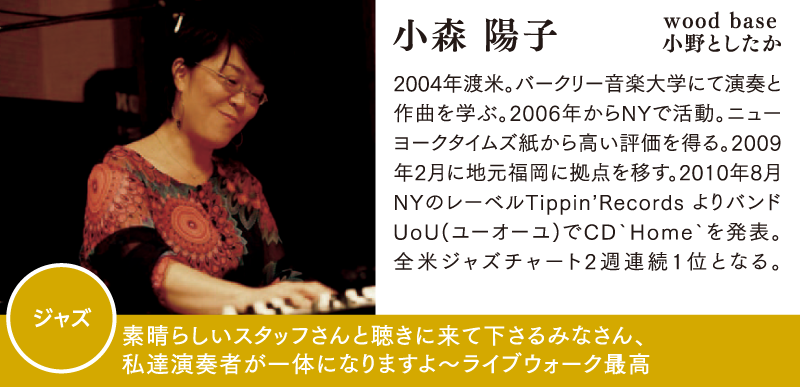 | MUSICIAN(50音順) | 川波幸恵 / 小森陽子 / 図鑑 / THE SOULMATICS(ザ ソウルマティックス) / 埜口浩之 |