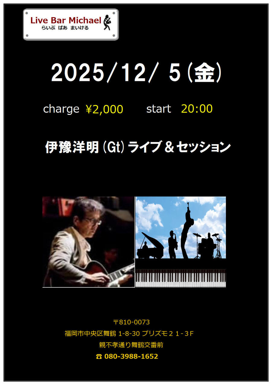 - 出 演 : 伊豫洋明(Gt)ライブ&セッション2000円20:00スタート