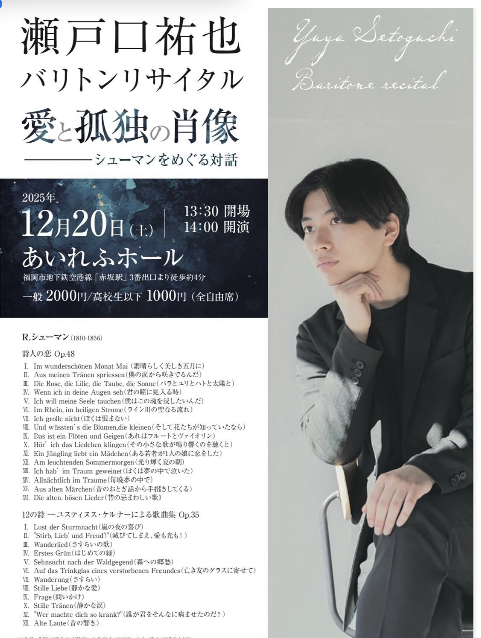 瀬戸口祐也 バリトンリサイタル 愛と孤独の肖像 ーシューマンをめぐる対話