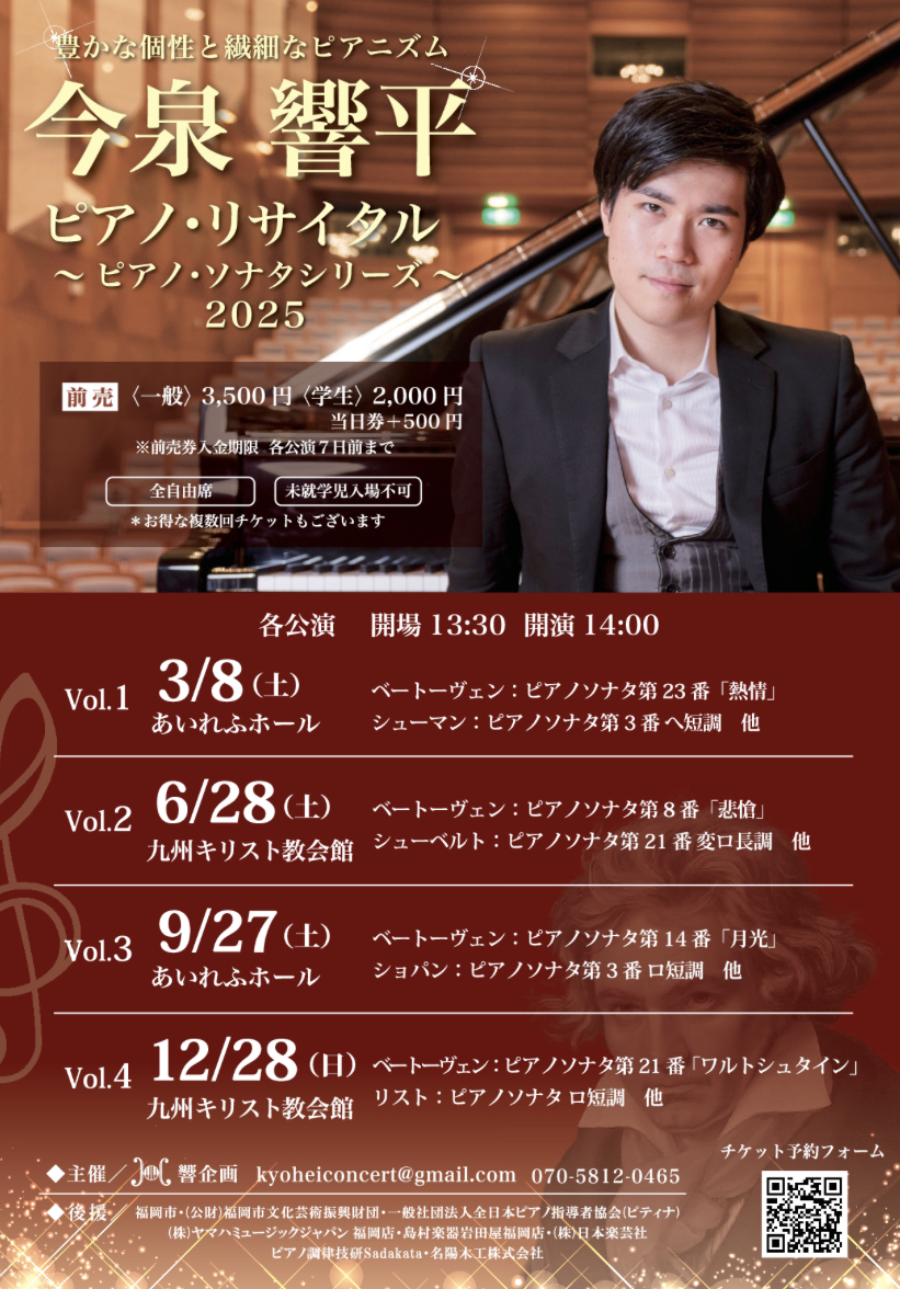 | イベント名 | 今泉響平ピアノリサイタル ~ピアノ・ソナタシリーズ Vol.4~ |