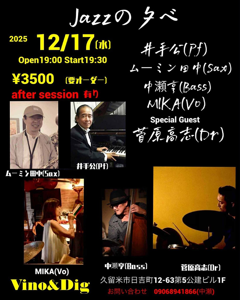 | 出演者 | 井手公(pf.) ムーミン田中(sax.) 中瀬亨(b.) MIKA(vo.) 菅原高志(dr.) |