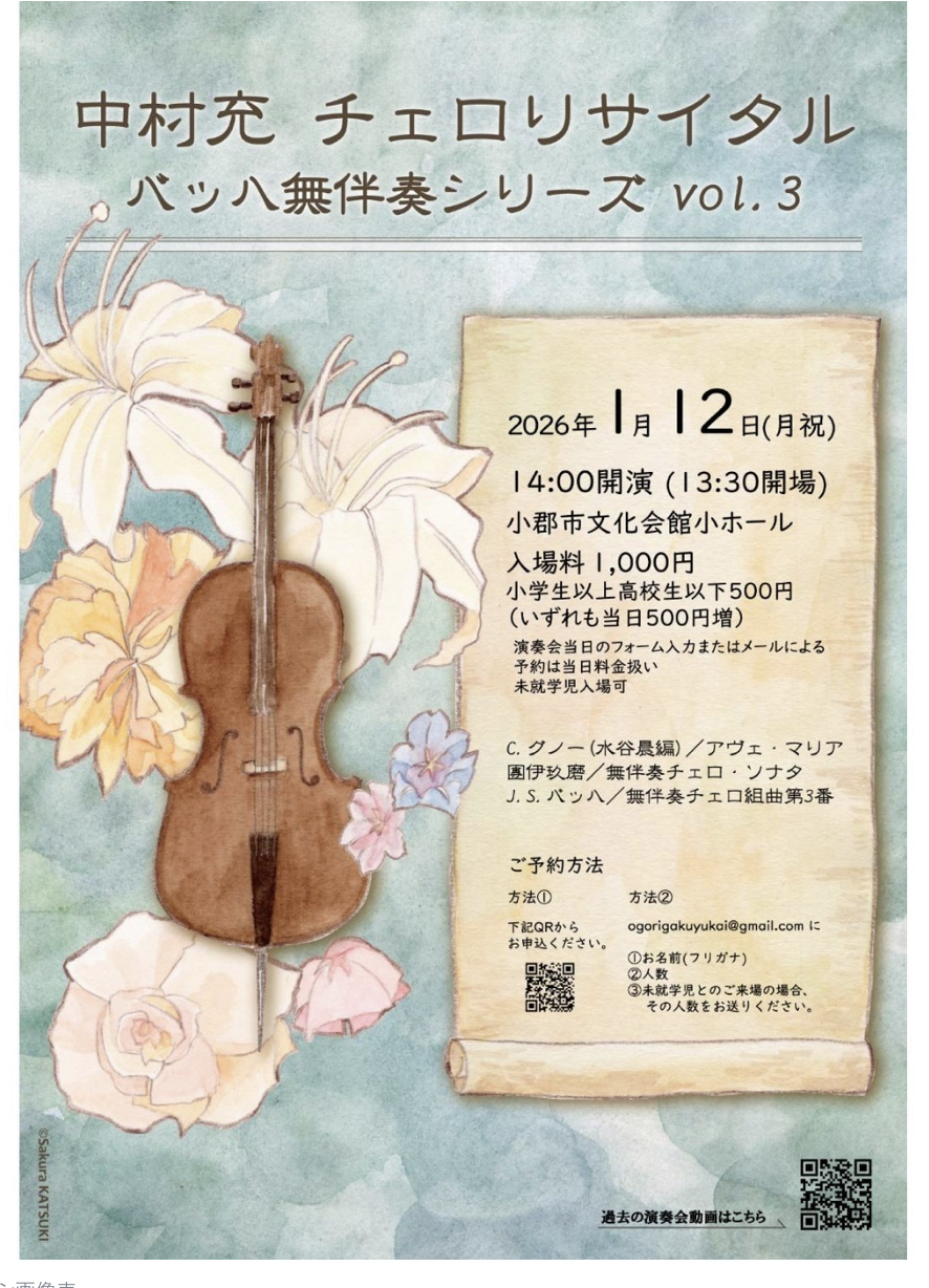 | イベント名 | 中村充チェロリサイタル バッハ無伴奏シリーズ Vol.3 |