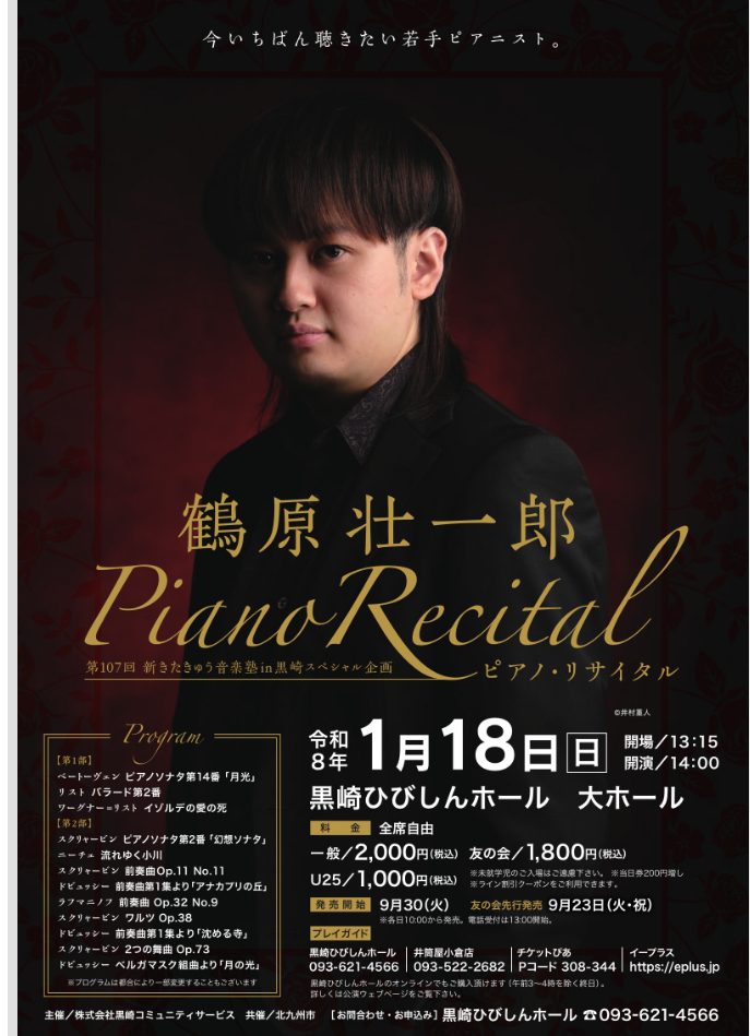 | イベント名 | 鶴原壮一郎 ピアノ・リサイタル |