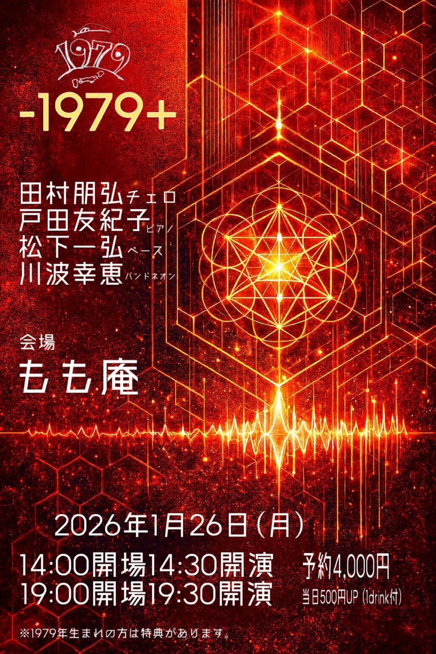 | 備考 | 「-1979+(イチキュウナナキュウ)」は、バンドネオン奏者・川波幸恵と仲間による、“音楽でつながるコミュニティバンド”です。 プラスもマイナスも抱きしめ合いながら、聴く人と一緒に新しい場を育てていきます。 |