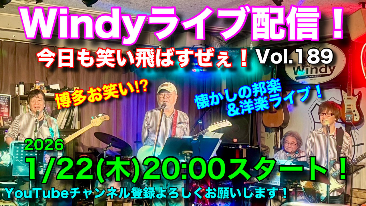 Windyライブ配信Vol.189!今日も笑い飛ばすぜぇ!