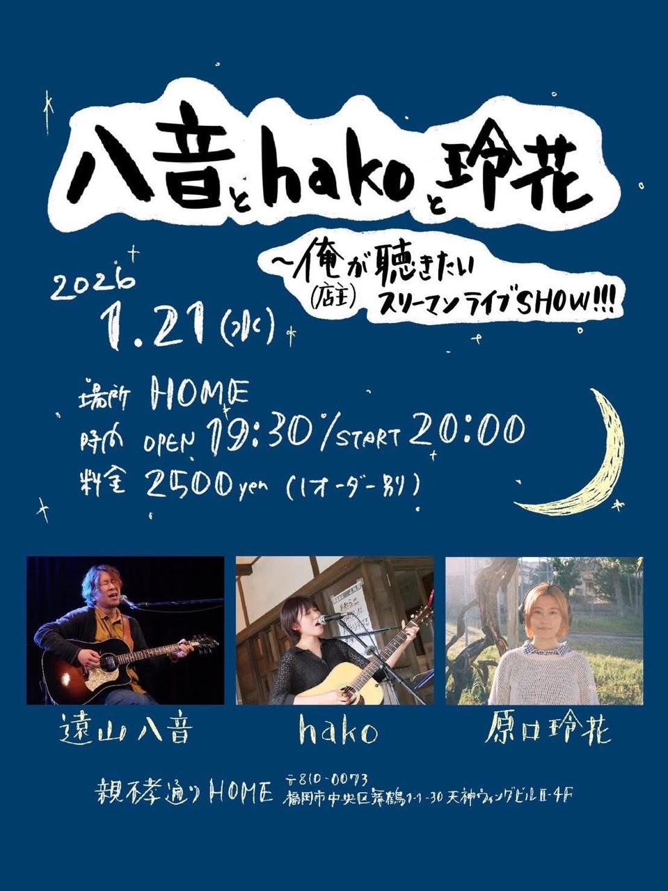 八音とhakoと玲花~俺(店主)が聴きたいスリーマンライブSHOW!!!