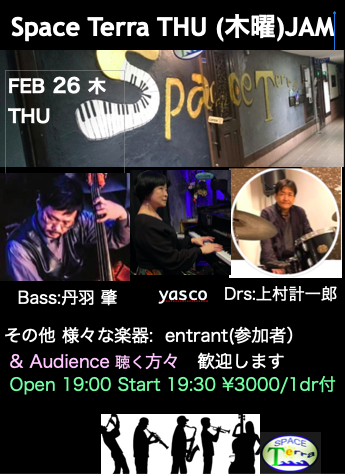 - 出 演 : Bass:丹羽肇、Drums:上村計一郎、pf:Yasco
