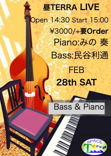 | 出演者 | Piano:みの 奏 Bass:民谷利通 |
