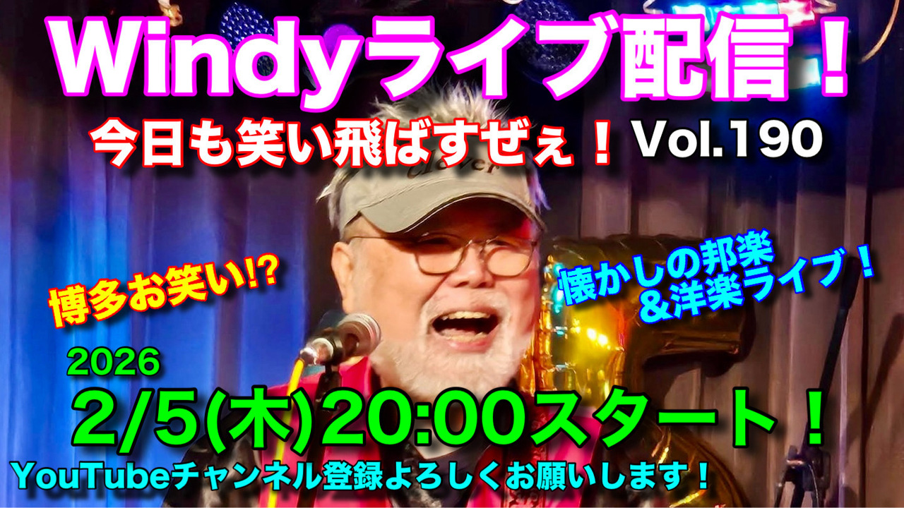 Windyライブ配信Vol.190!今日も笑い飛ばすぜぇ!