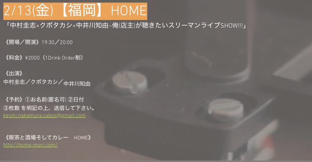 | イベント名 | 中村圭志×クボタカシ×中井川知由~俺(店主)が聴きたいスリーマンライブSHOW!!! |
