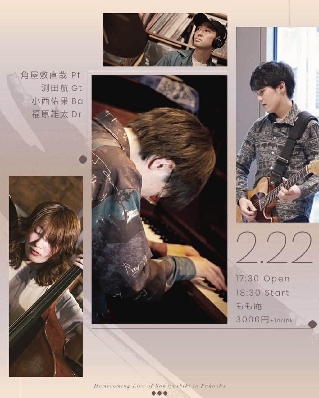 - 出 演 : 角屋敷直哉(ピアノ), 渕田航(ギター), 小西佑果(ベース), 福原雄太(ドラム)
