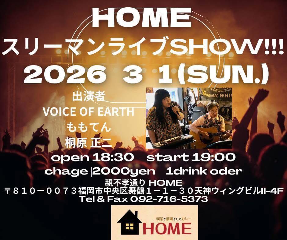 | イベント名 | 桐原×ももてん× VOICE~HOMEのスリーマンライブSHOW!!! |