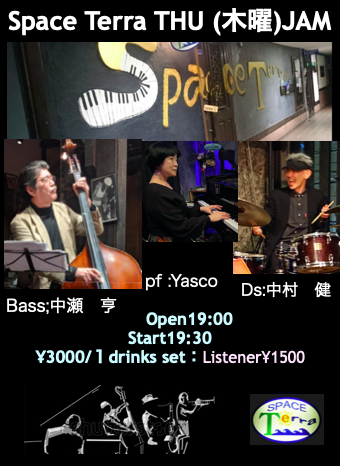 - 出 演 : Bass:中瀬亨 Drums;中村健、Piano:YASCO