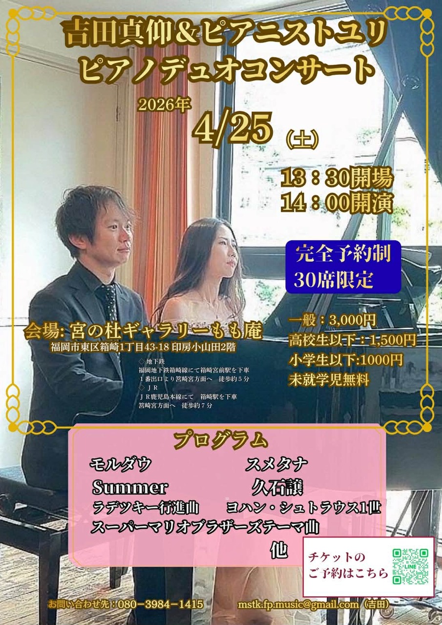 | 出演者 | 吉田真仰 (ピアノ) ピアニストユリ(ピアノ) |
